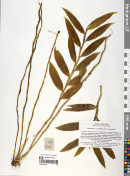 Lam Dong Province: Bao Lam District, Loc Bao Commune, around point 11°44’16.8”N 107°42’08.4”E; flat areas to steep slopes along river valley at elevation 800–900 m a.s.l.; very humid, primary to secondary broad-leaved forest mixed with bamboo; terrestrial herb with leaves to 1.5 m long in acidic soil rich in silicates, rarely on shady wet rocks, common locally, 18 December 2021, Nguyen Danh Duc & Nguyen Van Canh, 2021493.
